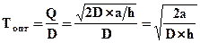 где: D – потребность; N – количество поставок; a – затраты на наладку одного производственного цикла; h – затраты на хранение одного изделия в течение периода.