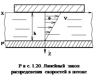 где h - динамическая вязкость; dV/dz - поперечный градиент скорости; S - площадь сдвига слоев смазки. Если скорость в направлении, перпендикулярном течению, по мере заглубления меняется по линейному закону (см. рис. 1.20), то dV/dz=V/h.