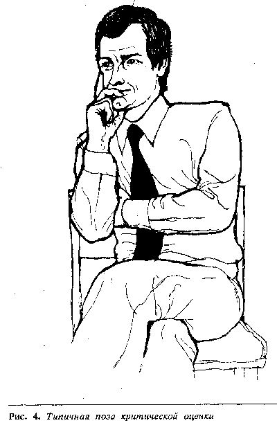 Если бы вы были собеседником человека, показанного на рис.4, и попросили его выразить свое мнение относительно того, что вы только что сказали, на что он бы ответил, что с вами не согласен, то его невербальные сигналы были бы конгруэнтными, т.е. соответ-ствовали бы его словесным высказываниям. Если же он скажет, что ему очень нравится все, что вы говорите, он будет лгать, потому что его слова и жесты будут не конгруэнтными. Исследования доказывают, что невербальные сигналы несут в 5 раз больше информации, чем вербальные, и в случае, если сигналы не -конгруэнтны, люди полагаются на невербальную информацию, предпочитая ее словесной.