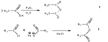 При дегидратации кислот или при взаимодействии солей кислот с хлорангидридами образуются ангидриды кислот: