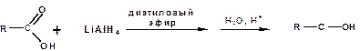 Примером реакции нуклеофильного присоединения по карбоксильной группе является реакция восстановления карбоновых кислот литийалюминийгидридом: