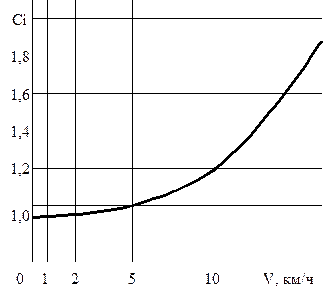 | Р и с. 5.66. Зависимость мощности приводных электродвигателей стенда oт скорости автомобиля v: 1 - при нагрузке на колесо 4903 Н; 2 - при 1962 Н | Р и с. 5.67. Зависимость относительной стоимости стенда C от скорости автомобиля (за единицу принята стоимость стенда со скоростью v =4 км/ч) | |