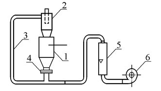 1 – бункер; 2 – циклон; 3 – трубопровод; 4 – шибер; 5 – ротаметр;