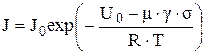 где J0 - константа изнашивания; U0 - энергия активации разрушаемых связей; s - напряжение; g - постоянная, связанная со структурой материала; m - коэффициент трения; R×Т - энергия теплового движения. Отличием полученного выражения является выделение в эффективной величине энергии активации механической составляющей, выраженной вторым слагаемым. Однако физический смысл констант J0 и g и в этом случае не ясен.
