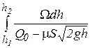 (h), поступления жидкости, можно определить время, в течение которого напор жидкости изменится от h1 до h2.