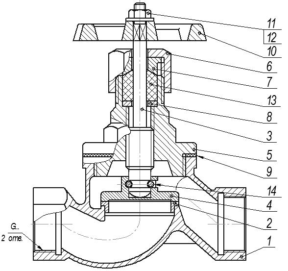 Рис. 3. Вентиль запорный проходной, тарельчатого типа: