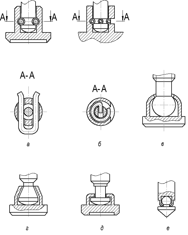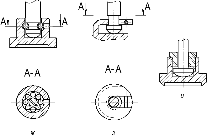 ж – при помощи шариков; з – при помощи штифта; и – при помощи резьбовой втулки