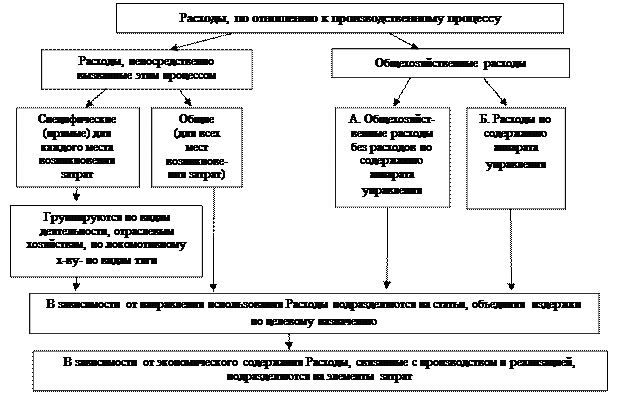 Эксплуатационные расходы группируют по элементам затрат (однородные виды затрат) и по статьям (по месту возникновения затрат) в соответствии с Номенклатурой доходов и расходов по видам деятельности ОАО «РЖД».