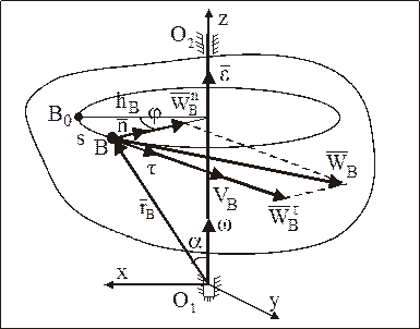 Точки вращающейся НМС, находящиеся на оси вращения, неподвижны, а остальные описывают окружности, плоскости которых перпендикулярны оси вращения, центры лежат на оси, а радиусы равны h — кратчайшему расстоянию от точек до оси вращения.