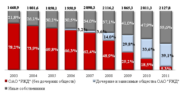 Основными собственниками грузовых вагонов внутри холдинга ОАО "РЖД" являются:
