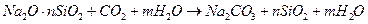 Твердеет жидкое стекло только на воздухе; под действием углекислого газа силикат натрия разлагается по реакции