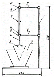 - подвижностью, оцениваемой глубиной погружения стандартного конуса, выраженной в см (рис.1); по этому показателю растворные смеси подразделяются на 4 марки (табл. 1).