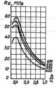 Рис.5. Зависимость прочности бетона от марки цемента и Ц/В отношения