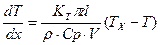 ρ·Cp·V·T - ρ·Cp·V(T+dT) + KT·πd(TX-T)dX =0