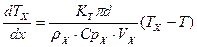 ρX·CpX·VX(TX+dTX) - ρX·CpX·VX·TX + KT·πd(T-TX)dX =0