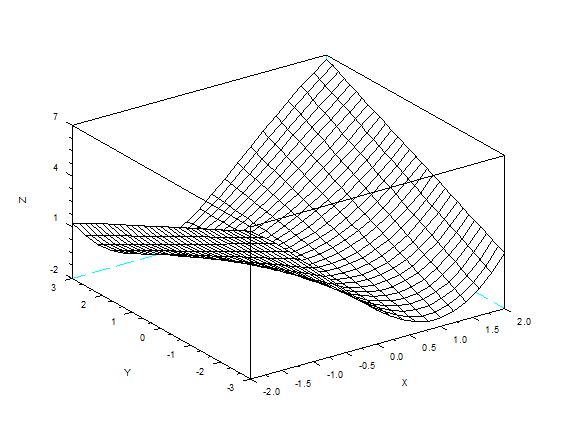 -->[x, y]=meshgrid(-2:0.2:2, -3:.2:3); z=x.^2+y.*sin(x); mesh(x,y,z)