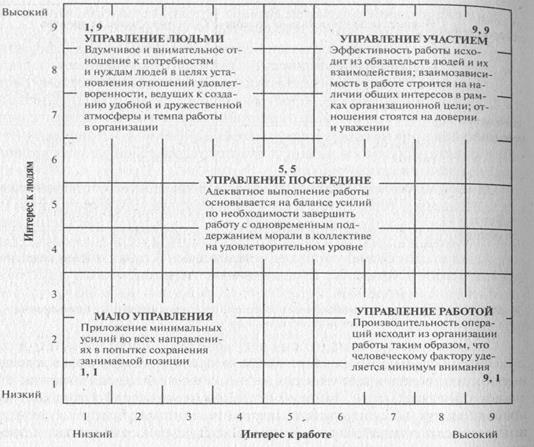 С помощью решетки проводится сравнение пяти основных стилей, которые представляют собой различные комбинации заботы о людях и производстве.