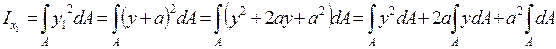Рассмотрим формулы для моментов инерции сечения при параллельном переносе осей.
