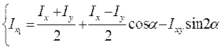 2-я возможная задача: обеспечивает требуемые геометрические характеристики сечения при минимальном расходе материала (задача оптимизации). При этом возникает потребность записи величин моментов инерции при повороте осей на некоторый угол α.