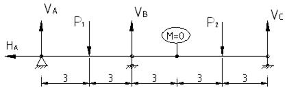 В каждом промежуточном шарнире изгибающий момент отсутствует.