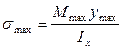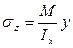 - формула для нормального напряжения при изгибе.