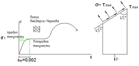 Для расчета стальных конструкций пластичную диаграмму заменяют условной диаграммой Прандтля.