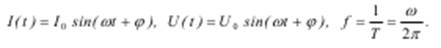 Постоянный ток характеризуется только двумя параметрами – величиной тока (напряжения) и его направлением (полярностью). Переменный ток для своего описания требует введения целого ряда других параметров, число которых зависит от формы переменного тока. Мы будем пользоваться в своем описании главным образом гармоническими токами. Гармоническими называются периодические функции, значение которых изменяется с течением времени по закону синуса или косинуса. Они могут быть записаны в форме: