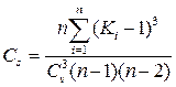 Коэффициент асимметрии Сs характеризует отличие по величине и количеству положительных (больше средних) и отрицательных (меньше средних) отклонений от среднего арифметического значения ряда. Для симметричных рядов (нормальное распределение ежегодных вероятностей превышения значений ряда) эти отклонения повторяются одинаково часто, поэтому Cs = 0. Для несимметричных рядов Cs ≠ 0, а коэффициент асимметрии определяется по формуле (при Сs < 1,0):