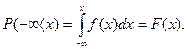 Если функция распределения вероятностей известна, при помощи интегрирования можно найти вероятность попадания значения Х в любой интервал (-∞, х):