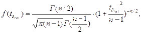Распределение случайной величины tδ(n) получил английский химик и математик В.С. Госсет, публиковавший свои работы под псевдонимом "Стьюдент" (студент). Плотность вероятности распределения Стьюдента имеет вид: