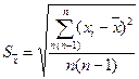 5. Определяют среднюю квадратичную ошибку среднего арифметического