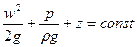 Для элементарной струйки невязкой жидкости уравнение Бернулли обычно записывают в виде энергий, отнесенных к единице веса жидкости: