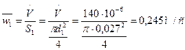 Рассчитаем местные скорости движения жидкости на оси потока для каждого сечения: