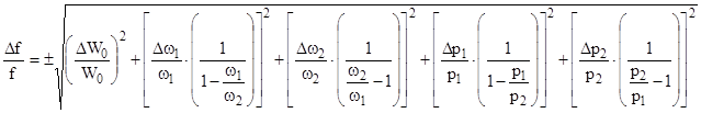 Как видно из вычислений при измерении величин w , W0 и p с точностью 1% относительная ошибка в определении f будет 3,5% , а a - 3,7% .