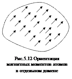 спонтанно ориентированы в одном направлении. Это обусловлено параллельным выстраиванием спинов определенных электронов в каждом атоме ферромагнетика. В пределах достаточно большого объема, т.е. домена, который содержит миллионы атомов, спины и магнитные моменты всех атомов направлены одинаково. Если бы можно было заглянуть внутрь кристалла и увидеть векторы магнитных моментов атомов, то картина была бы подобна картине, изображенной на рис.2.12.