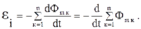 Э.д.с. электромагнитной индукции в контуре пропорциональна скорости изменения магнитного потока Фm сквозь поверхность, ограниченную этим контуром: