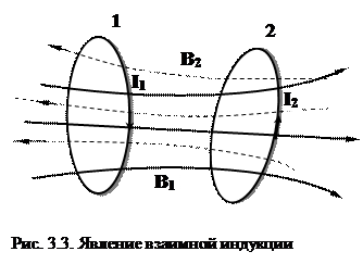 Магнитное поле этого потока В2 изображено на рис.3.3 пунктирными линиями. Как и в первом случае, при изменениях тока I2 в контуре 1 индуцируется э.д.с., равная