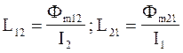 где L12 и L21 - скалярные величины, равные отношению потокосцепления одного контура к силе тока в другом, обуславливающей это потокосцепление. В отсутствие ферромагнетиков для любых двух связанных контуров коэффициенты взаимной индукции равны друг другу: