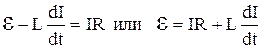 Пусть при замыкании контура ток меняется со скоростью dI/dt. Тогда, как мы уже знаем, в контуре индуцируется э.д.с. самоиндукции εs, равная -LdI/dt, препятствующая изменениям тока. В контуре действует также постоянная э.д.с. ε. Если за положительное направление тока принять то направление, в котором ε заставляет течь ток в контуре, то полная э.д.с. в любой момент времени будет равна ε- LdI/dt. Эта суммарная э.д.с. вызывает ток I через сопротивление R. На сопротивлении происходит падение напряжения, равное IR. Закон Ома для контура имеет вид