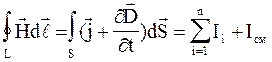 магнитного поля вдоль произвольного замкнутого контура равна полному току, охватываемому этим контуром. Уравнение показывает, что магнитные поля могут порождаться либо электрическими токами, либо переменными электрическими полями.