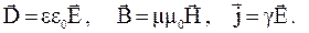 Если изучаемые среды несегнетоэлектрические, неферромагнитные и изотропные, между величинами индукции и напряженности магнитного и электрического полей, а также между плотностью тока и напряженностью электрического поля существуют линейные зависимости: