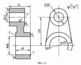 6. По эскизу детали (рис.11) разработайте эскизы элементов литейной формы, модели стержневого ящика, собранной литейной формы (в разрезе). Опишите последовательность изготовления литейной формы методом ручной формовки. Материал детали – чугун СЧ20.