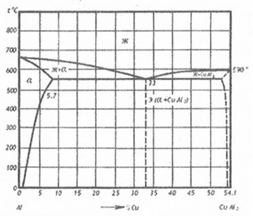 Рис.8. Диаграмма состояния системы Al – Cu.