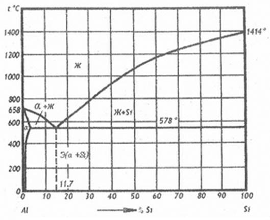 Рис. 9 Диаграмма состояния системы Al – Si.