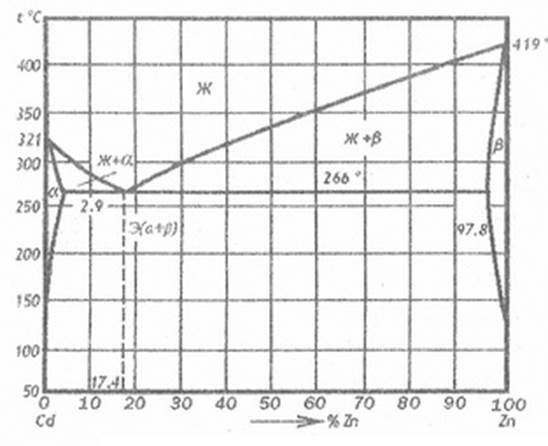 Рис. 11 Диаграмма состояния системы Cd – Zn.