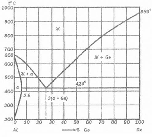 Рис. 13 Диаграмма состояния системы Al – Ge.