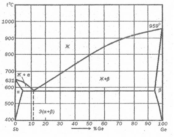 Рис. 15 Диаграмма состояния системы Sb – Ge.