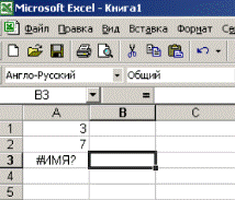 При вводе в формулу ссылок вручную необходимо убедиться, что клавиатура находится в режиме ввода латинских символов, иначе вместо результата будет выведено #ИМЯ?, что указывает на ошибочный ввод рисунок 202.