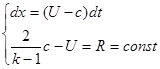 (11.15) , где С –скорость звука в газе (уравнение 11.15 нельзя записать в конечном виде т.к. "U" и "c" могут быть функциями "x" и"t" ).