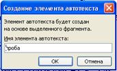 3. выполнить команду Вставка / Автотекст / Создать или нажать Alt+F3. На экране появится окно диалога Создание элемента автотекста изображенного на рисунке 7;
